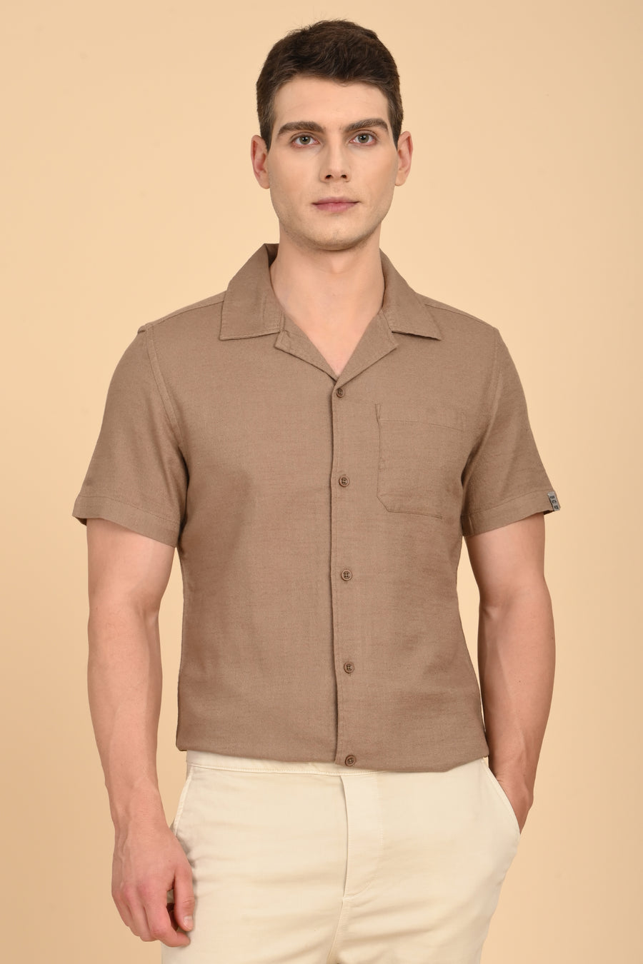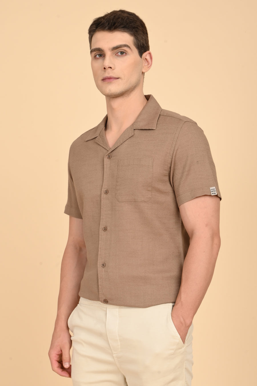 Aurelia - Cotton Crape Solid Shirt - Khaki